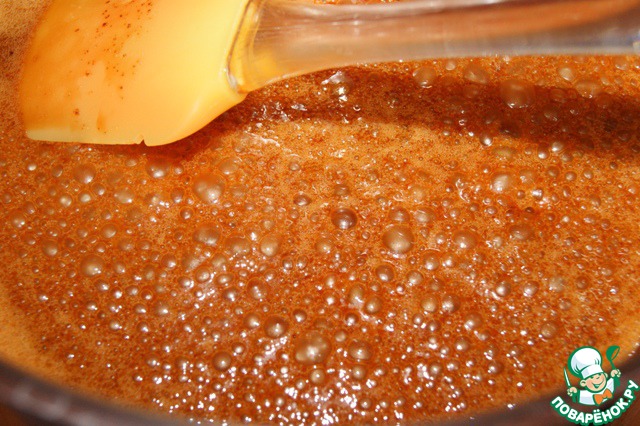 И на среднем огне, постоянно помешивая, сварить карамель, это займет минут 5, для того, чтобы сахар полностью растворился.