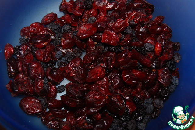 Клюкву и изюм смешать и добавить к орехово-овсяной смеси.