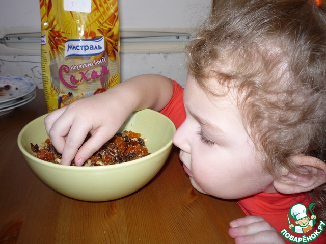 Успеваем делать все быстро, иначе помощники действительно помогают... исчезать фруктово-ореховой массе, причем быстро.
