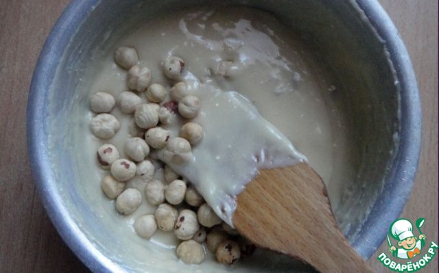 Всыпать обжаренные и очищенные от шелухи орехи.