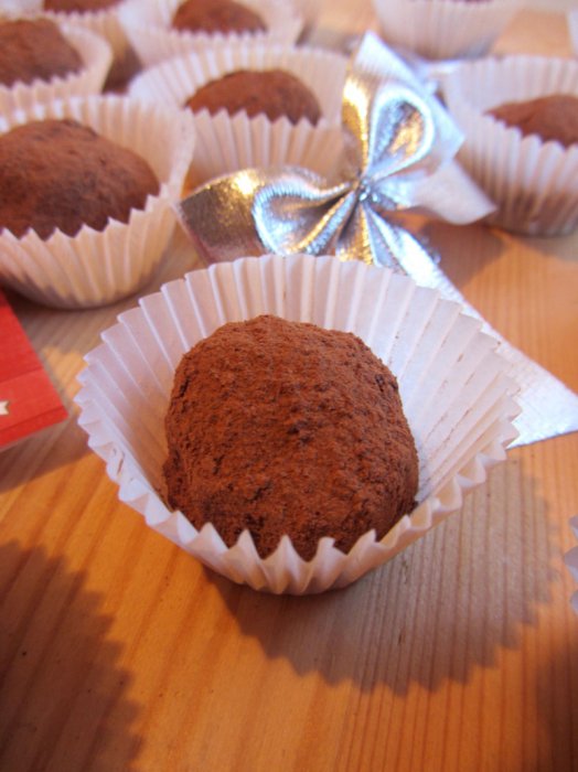 снова формируем шарик и обваливаем в просеянном какао-порошке.
