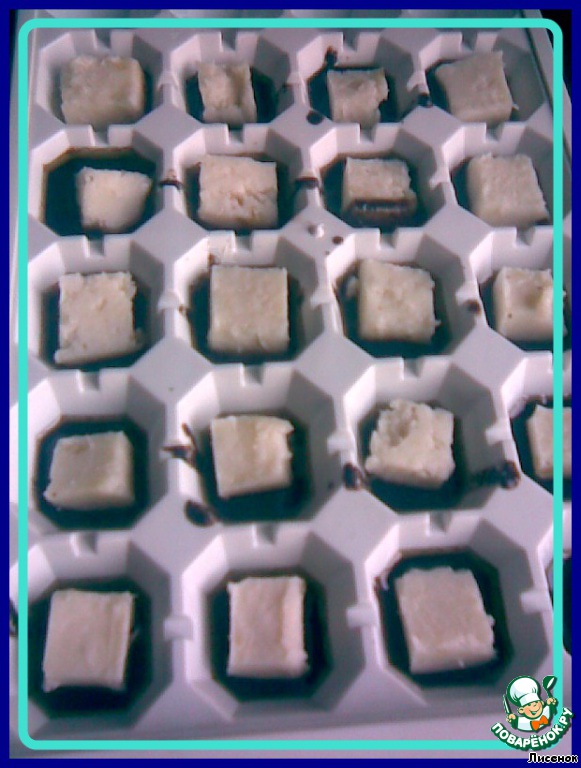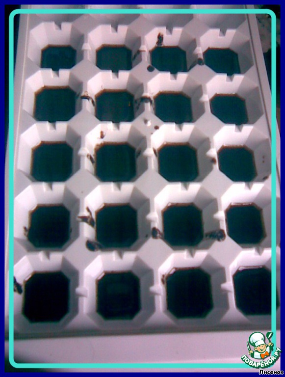 В формочку для льда заливаем растопленный шоколад на 1/2.