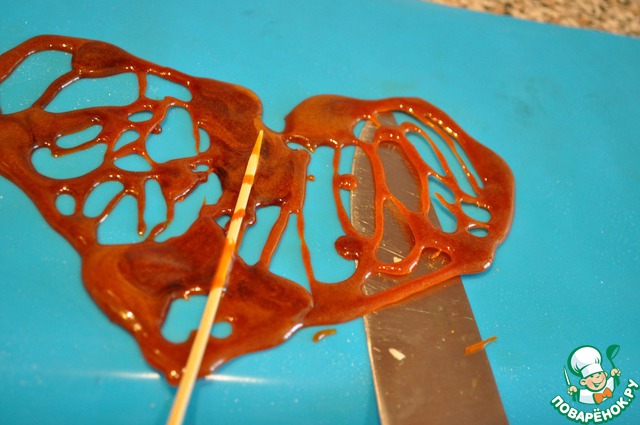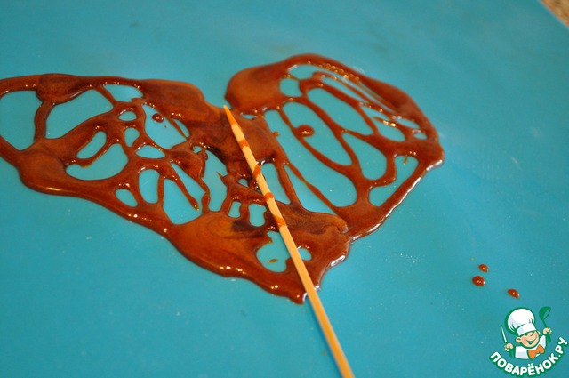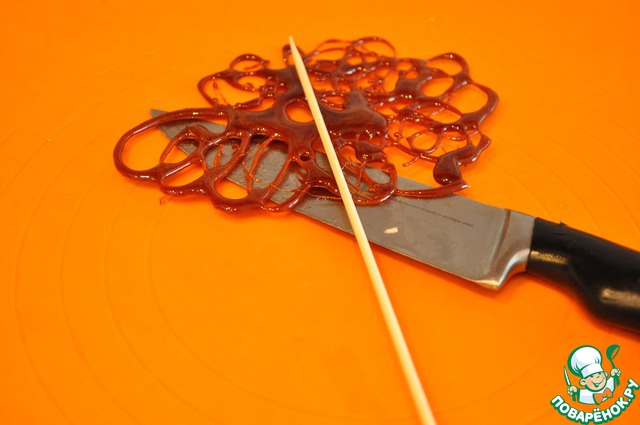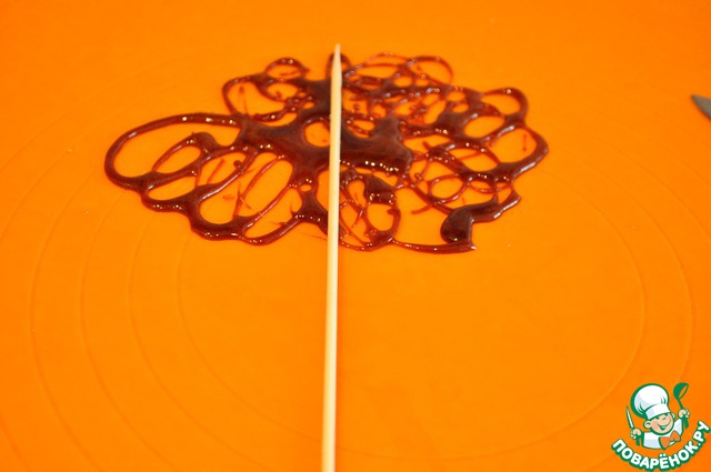 К месту приложения палочки наливаю побольше карамели. Даю остыть.