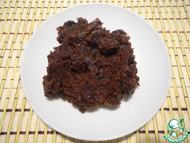 Чернослив хорошо вымыть, промокнуть салфеткой, измельчить в блендере или пропустить через мясорубку.