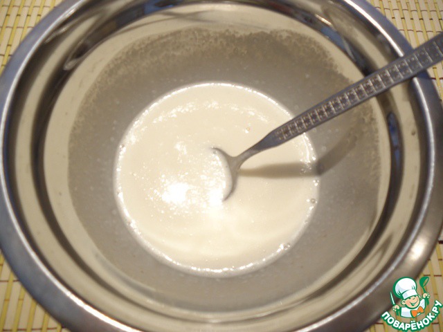 Набухший желатин нагреть на плите, постоянно помешивая, до полного растворения, но не кипятить. Снять с плиты.