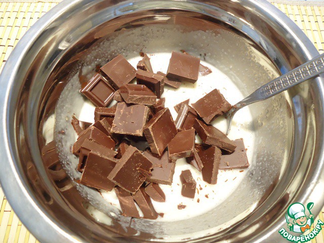 Добавить темный шоколад, размешать до полного растворения.
