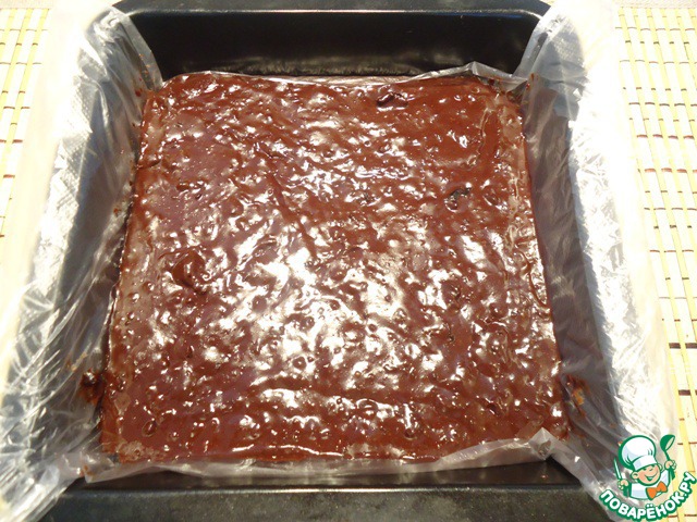 Выложить массу в форму. Толщина массы должна быть 1,2-1,5 см. Дать массе остыть и убрать в холодильник примерно на час.
