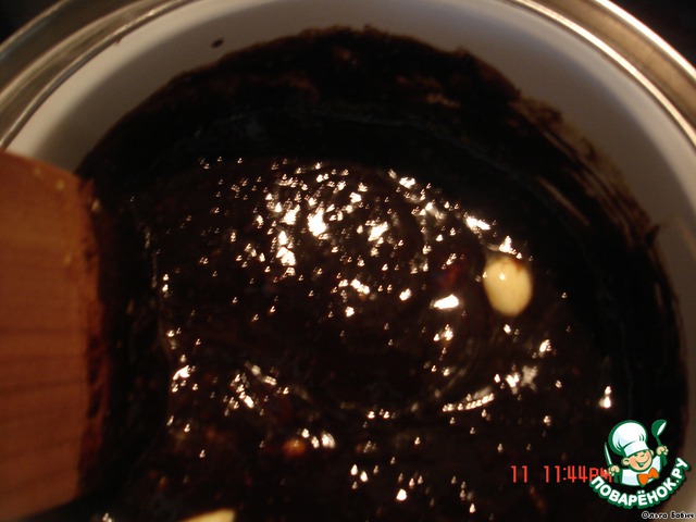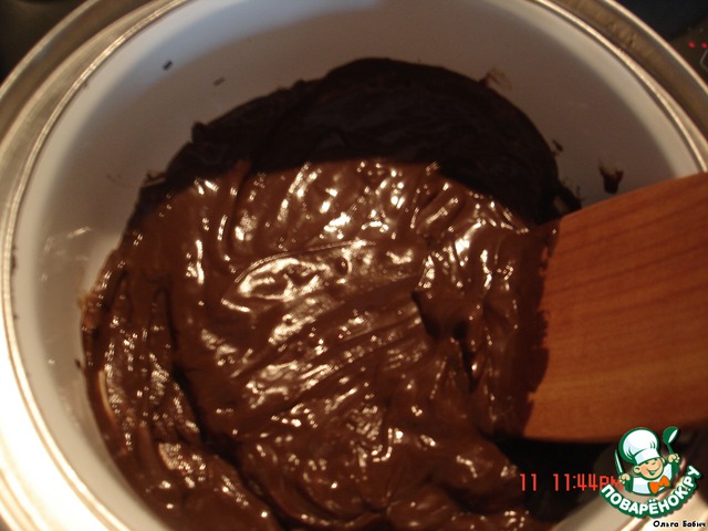 Добавить в шоколад приготовленную массу, хорошо перемешать, снять с огня(с водяной бани), дать остыть.