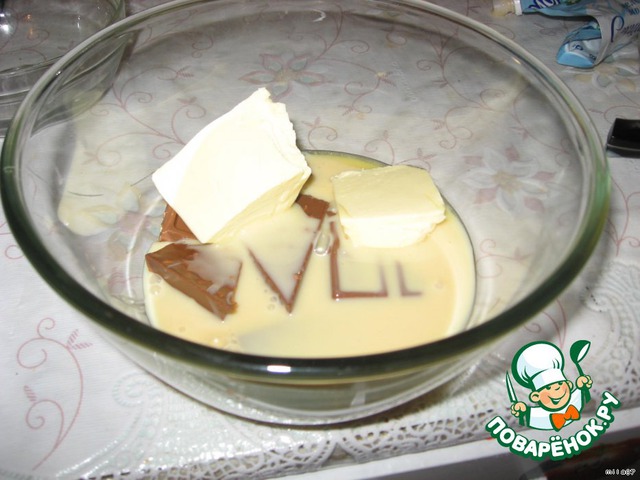 Растопить шоколад, добавить в него сгущенку, кофе и сливочное масло.