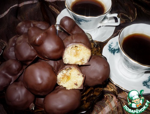 Ну и последний шаг - растопить на водяной бане шоколад и обмакнуть в него конфеты. Можно сделать это с помощью зубочистки, я просто опускала их в шоколад и ложечкой доставала. Выложить конфеты на пергамент и терпеливо ждать, когда шоколад застынет (лучше поставить их в холодильник).