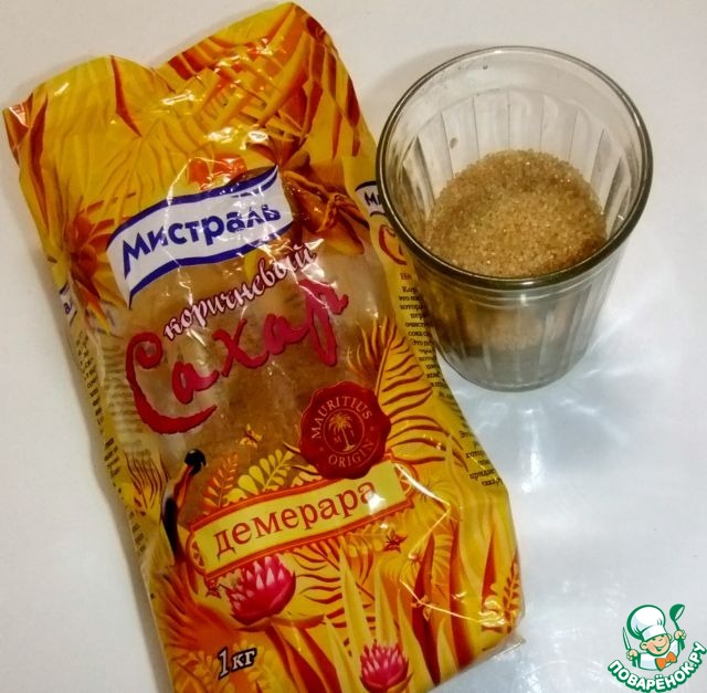 Сначала надо приготовить начинку. Отмерять 80 граммов коричневого сахара ТД"Мистраль" демерара.