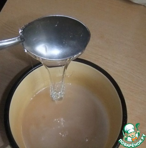 Снять с огня, добавить глюкозный сироп (или мед), тщательно размешать.