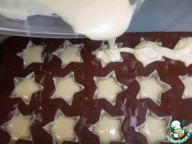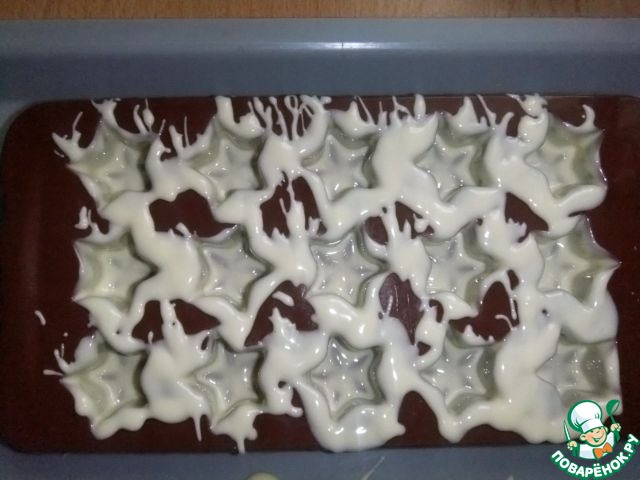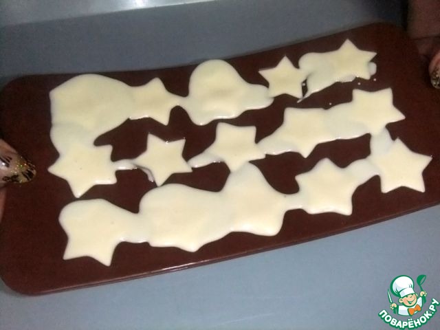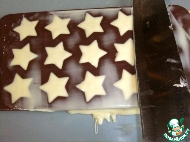 Снять излишки горячего шоколада с помощью ножа или скребка. Поставить в морозилку на 20 минут.