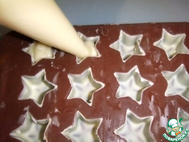 Наполнить остывшей начинкой наши конфеты. Поставить в морозилку на 10 минут.