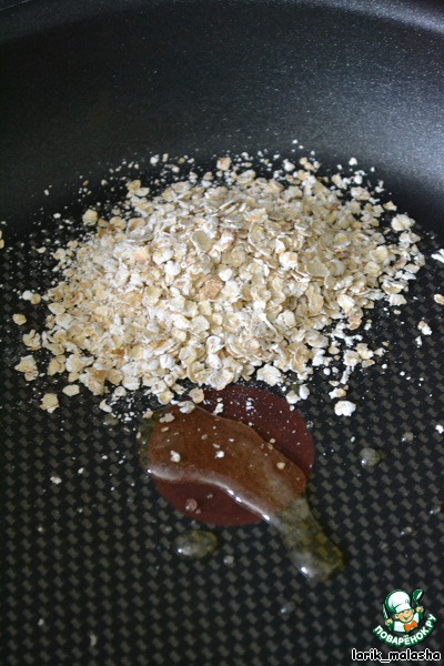 На сковороде разогреть мед, всыпать хлопья и жарить до румяности.