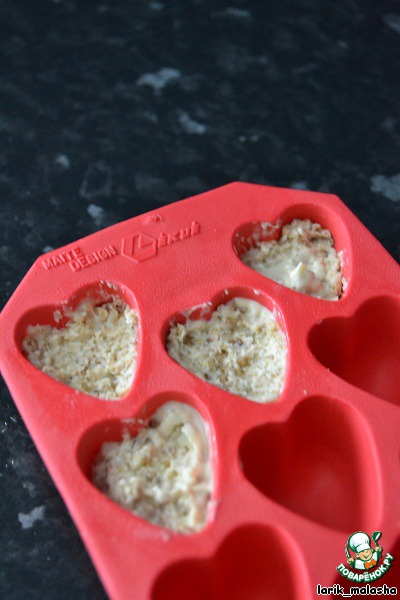 Полученную массу разложить в силиконовые формочки и положить в морозильную камеру на 10-15 минут. Шоколад должен затвердеть.
