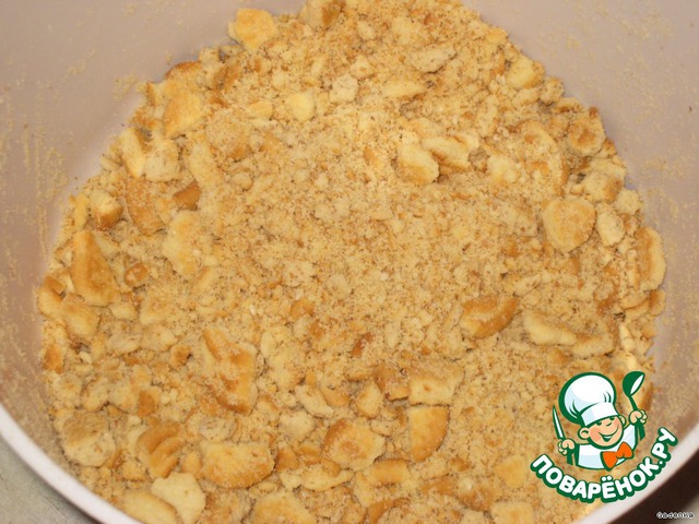 Печенье накрошить, чтобы получилось половина массы крошкой, вторая половина кусочками.