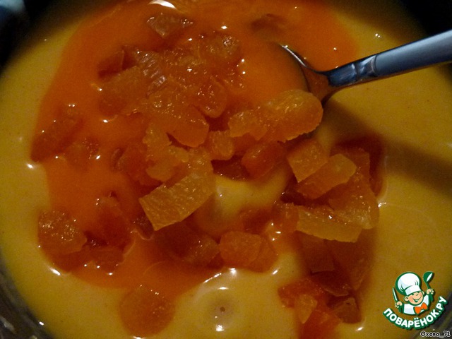 Желток взбить в отдельной посуде вилкой или венчиком. Добавить в шоколадно-сливочную смесь. Затем сахарную пудру и абрикос. Всё очень хорошо перемешать. Накрыть пищевой плёнкой и поставить в холодильник на ночь.