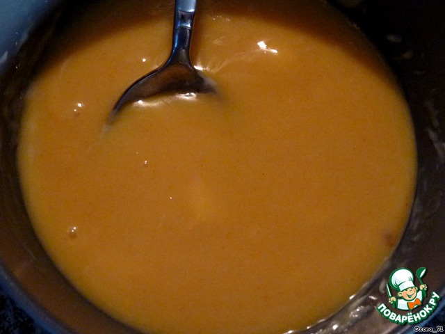 Выключить огонь, но не отставлять с водяной бани, добавить порезанное на кубики масло, затем сливки и шафран (по желанию 1 упаковочка или на кончике ножа). Хорошо размешать до полного растворения масла.