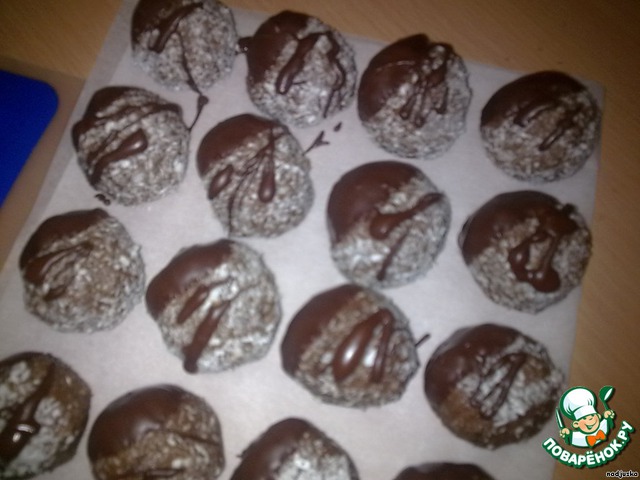 Делаем шарики, обваливаем в кокосовой стружке и кладем, чтоб просохли минут 20-30.