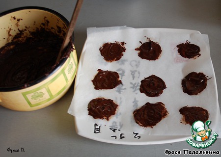 Еще пробовала такой способ. Горячим шоколадом нарисовать кружки на пергаменте, поместить на них мороженое и полить сверху шоколадом. Так лучше готовить небольшими партиями, мороженое не успеет растаять. Пришла к этому выводу опытным путем.