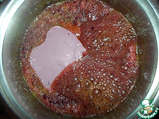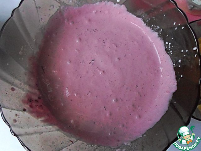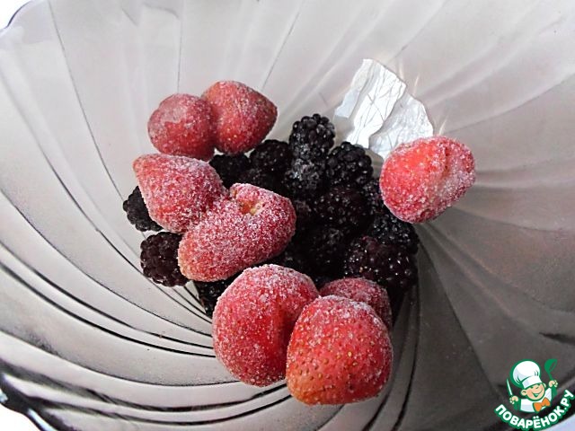 В оригинале была малина, у меня она на момент приготовления отсутствовала и я заменила на ягодное ассорти. Если Вы берете замороженные ягоды, дайте им время растаять.