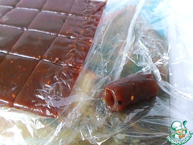Отделяем каждый кусочек, заворачиваем каждую конфетку в пищевую пленку или в бумагу для выпекания.
