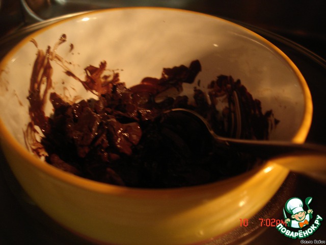 Растопить темный шоколад в микроволновке, не забывая помешивать.