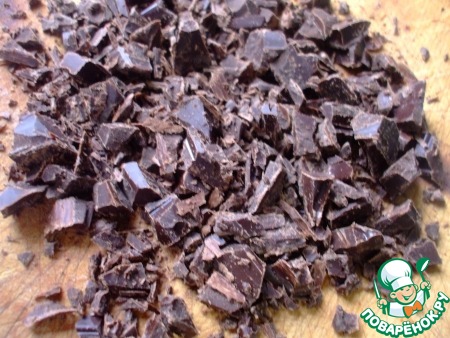 72 гр шоколада я рублю крупнее –все равно его топить. Растапливаю на водяной бане или в микроволновке. Помним –топить можно в миске из нержавеющей стали, на небольшом, ниже среднего, огне, дно миски не должно касаться воды, частицы воды в виде пара или брызг не должны попадать в шоколад. Это важно!