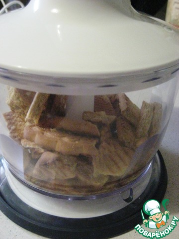 Поломать печенье. В чашу блендера положить кусочки печенья и грецкие орехи. Всё измельчить в крошку.