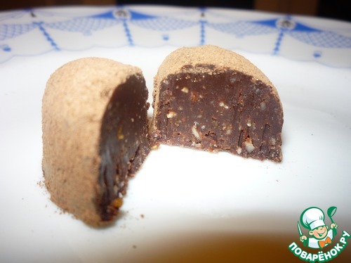 Убираем наше "тесто" на 1,5-2 часа в холодильник и еще на 10-15 минут в морозильную камеру. По прошествии времени достем трюфельную массу, зачерпываем ложкой и формируем шарики (или придаем любую другую форму), обваливаем в порошке какао. Охлаждаем еще минут 15-20 и наслаждаемся!