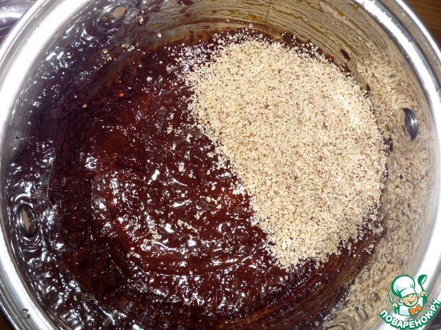 Теперь постепенно начинаем добавлять молотый фундук и замешиваем до получения однородной массы.
