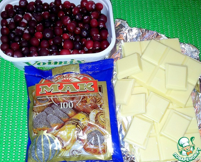 Ингредиенты - клюква замороженная, мак, белый шоколад.