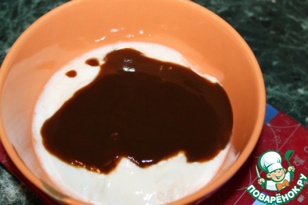 Немного взбить йогурт с фруктовым пюре, у меня из чернослива.