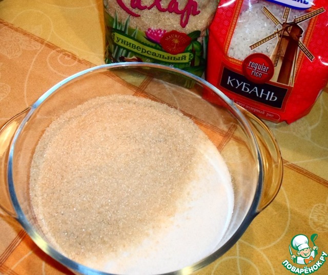 Смешайте рисовую муку, сахар и разрыхлитель.