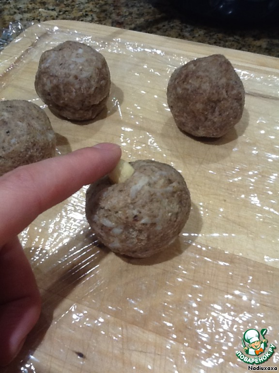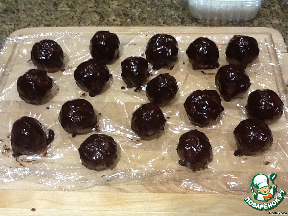 Формируем шарики и вовнутрь вдавливаем миндаль. Шарики опять отправляем охлаждаться.