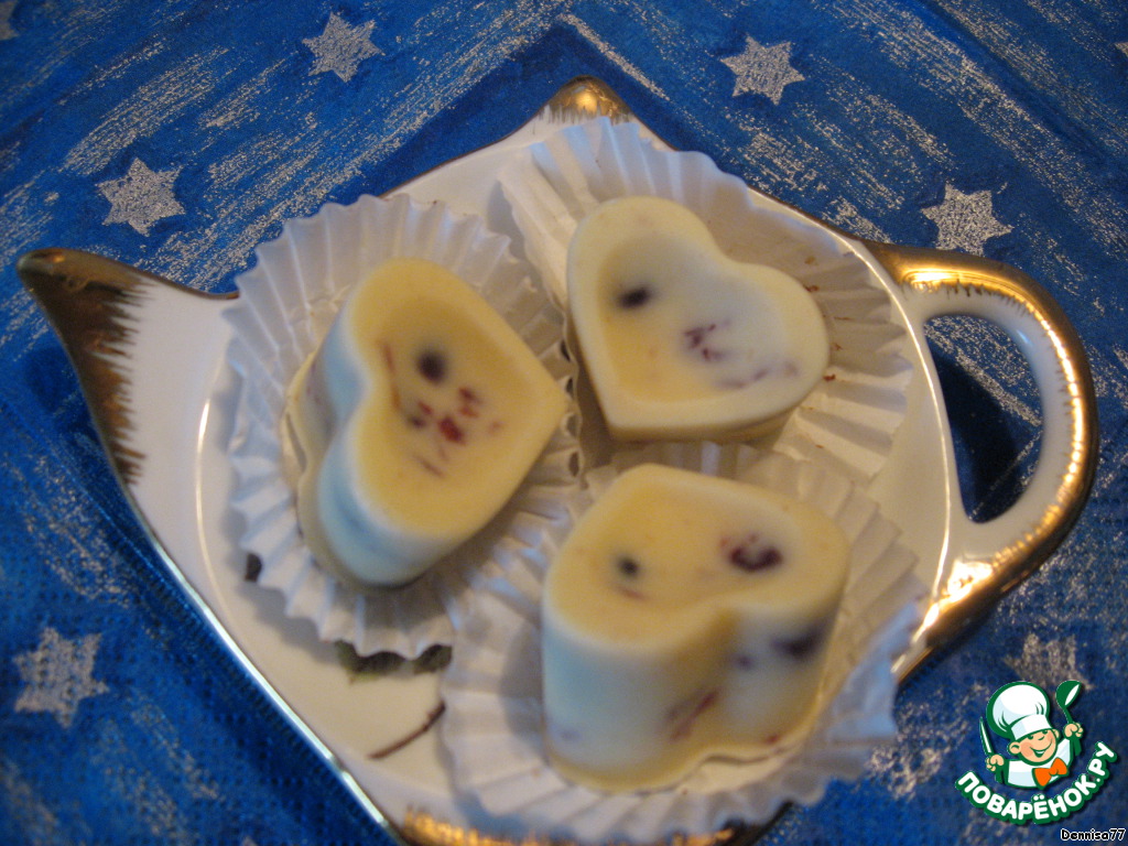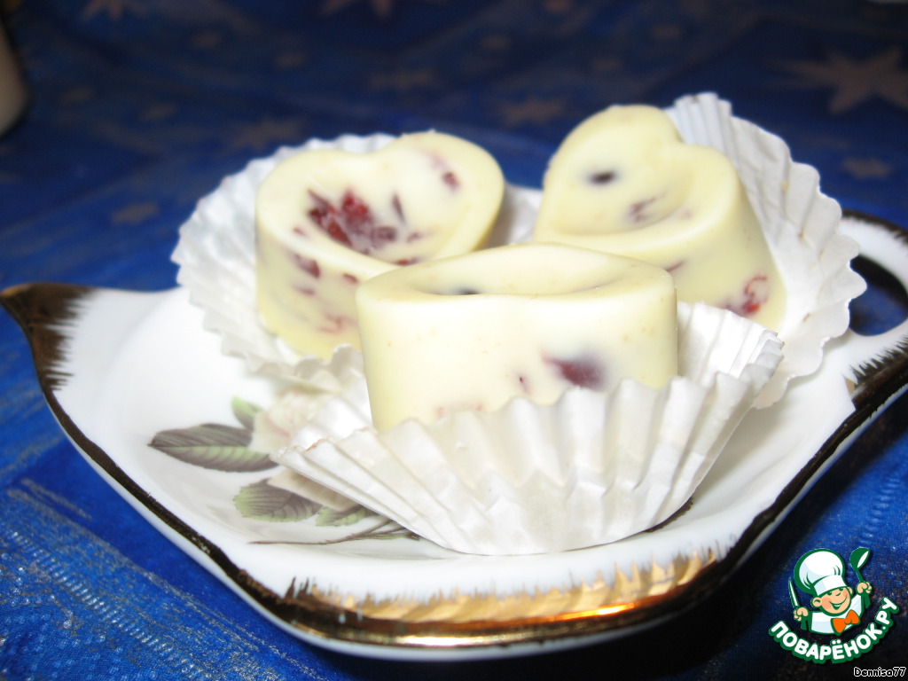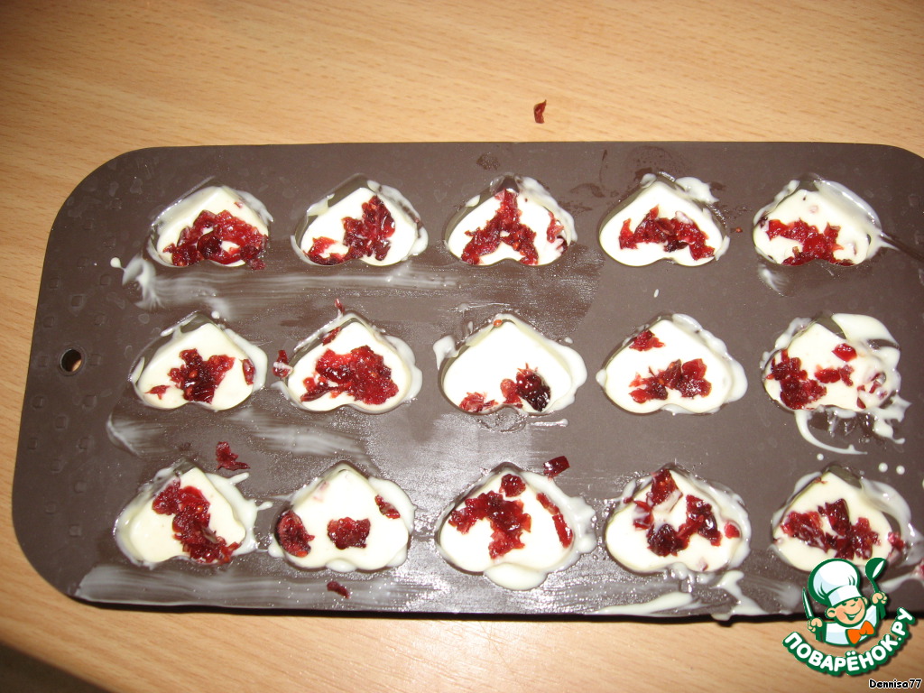 Уровнями кладем сначала шоколад, потом немного клюквы и так, пока наши конфетные формочки не будут заполнены.