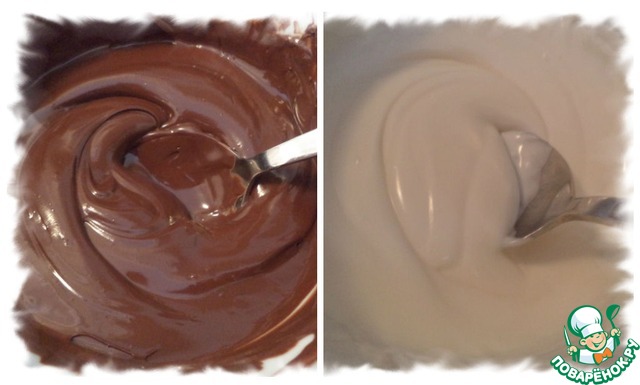 Сверху опять залить шоколадом (½ ст. л.), опять постучать формой по столу что бы шоколад равномерно распределился и отправить в морозилку на 15 минут пока шоколад хорошо не застынет.