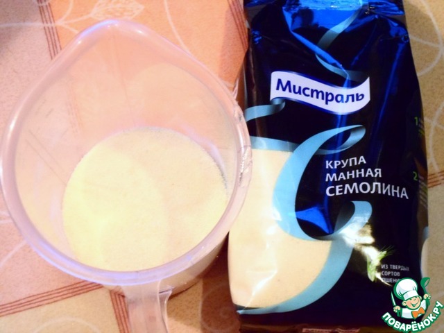 Стакан - объем 240 мл (все ингредиенты я отмеряла, пользуясь мерным стаканам). Для приготовления десерта я использую крупу манную Семолина Мистраль.