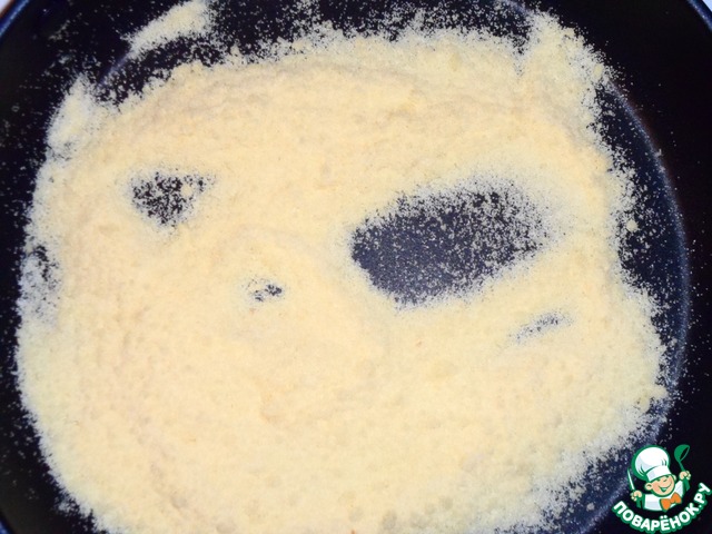 Растопите на сковороде оставшееся масло и немного подрумяньте семолину (примерно 5 минут).