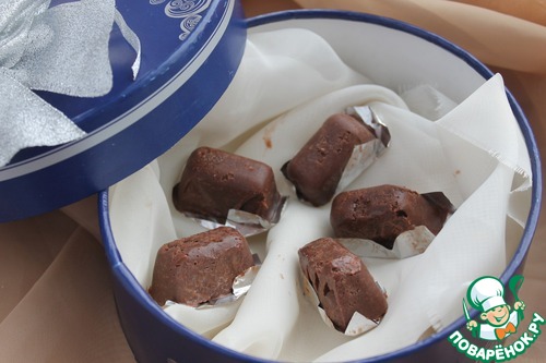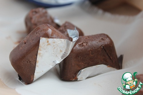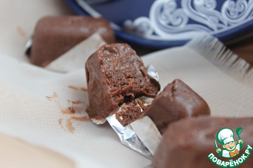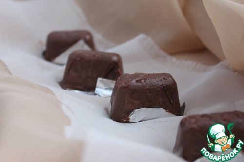 Выкладываем в формы, я использовала формочку для льда, ставим в морозилку до застывания, там и храним конфеты т. к полежав при комнатной температуре начинают быстро таить.