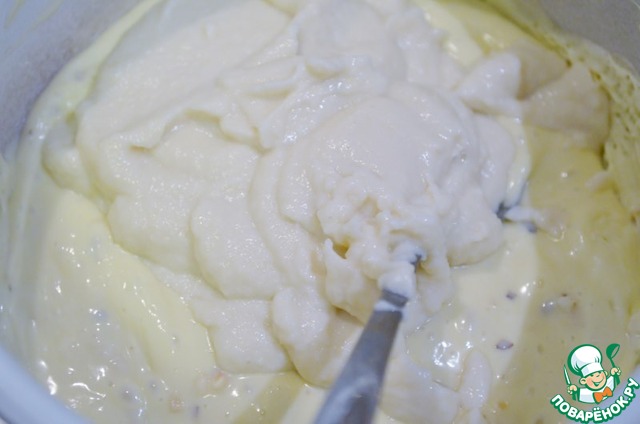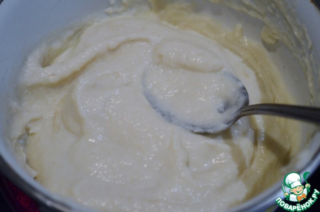Смешать пюре из капусты и шоколад. Слегка охладить.
