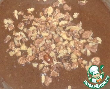 Добавляем грецкие орехи. Перемешать. Проварить массу до загустения.