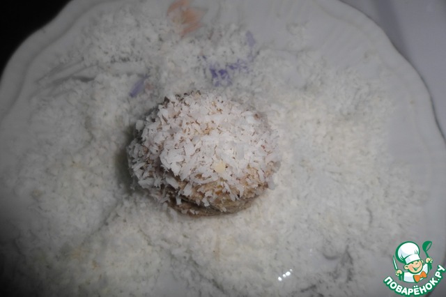 4. Обваливаем шарики в кокосовой стружке.