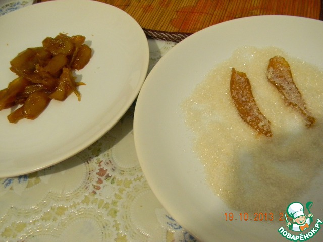 Ломтики имбиря обваляйте в сахаре и оставьте в закрытой посуде.