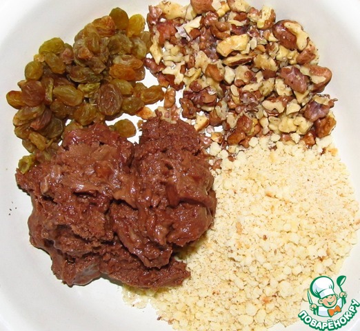 Я неправильно сделала. А Вы сделайте так: смешайте сухие ингредиенты, а потом добавьте шоколад (хотя каждая нормальная хозяйка так и сделает :) )