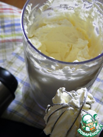 Не перестарайтесь, иначе Маскарпоне расслоится. Нужно лишь получить однородную массу.