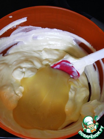 Соединяем с Маскарпоне и перемешиваем до однородности.