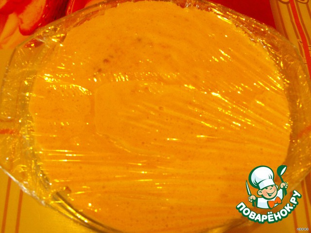 Выложить форму плёнкой, положить смесь, накрыть плёнкой и поставить в морозилку на 4 часа(десерт можно хранить в морозильной камере до 2 недель)