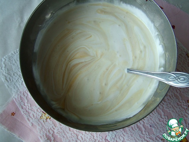 Хорошо охлажденные сливки взбиваем в легкую пену. Не нужно взбивать до плотного крема, так как при заморозке в мороженице сливки могут превратиться в масло.